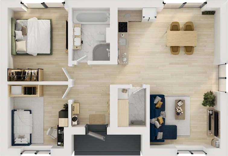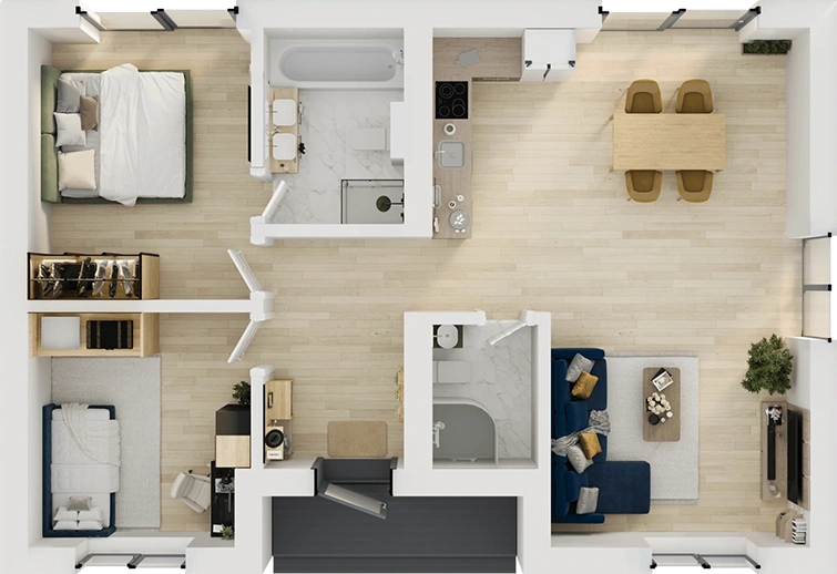 - 2 спальни