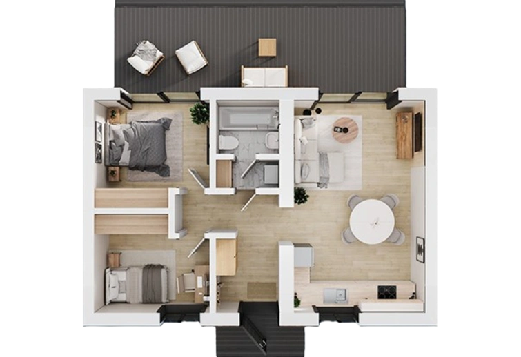 Возможна пристройка террасы. См. конфигуратор